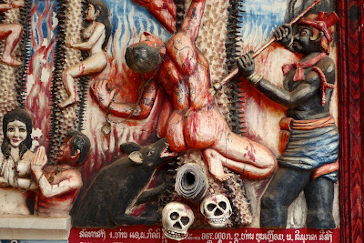 A temple on the Mekong near where I live has graphic 3D murals depicting heaven and hell.